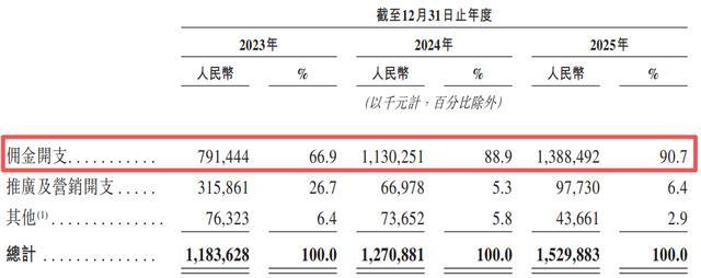 为了获得这些订单,公司不得不支付高额渠道成本。2023年至2025年,领行科技销售及分销开支分别约为11.84亿元、12.71亿元和15.30亿元。